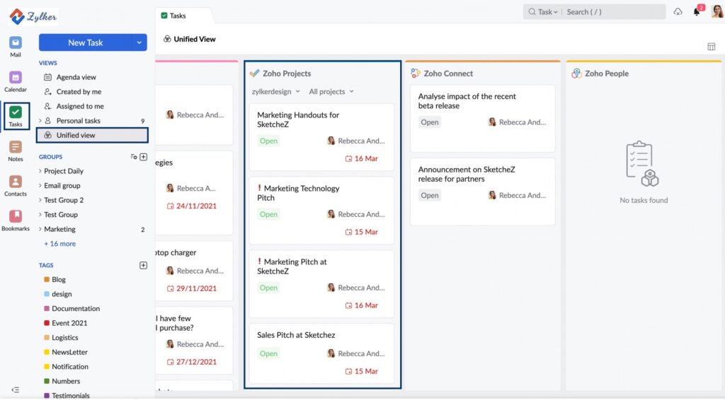 If you use Zoho Projects to manage your Projects, in Zoho Mail you can view all your tasks across portals under the respective portals. This integration further helps you to directly associate the emails you receive with Project Tasks or create them as Project Bugs for tracking. The Tasks App inside Zoho Mail, gives you a consolidated view of your personal […]